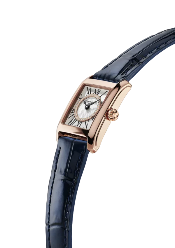 Boasting clean lines an an elegant polished case, this watch sports a classic white dial with a decorative Clous de Paris motif and traditional Roman-numeral hour markers. The square shape makes it the perfect fit for any woman’s wrist.